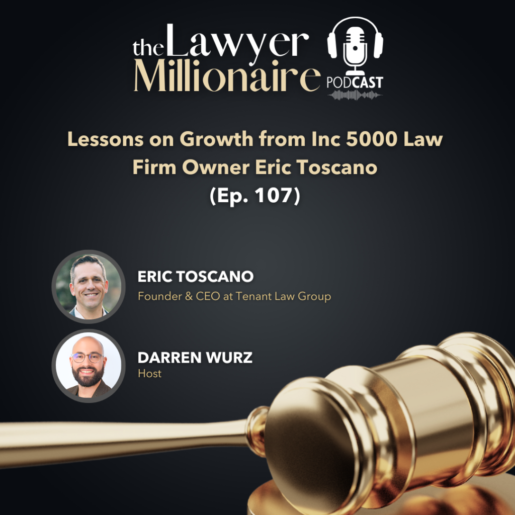 Scaling a law firm isn’t about getting more clients. It’s about building and inspiring a team. Welcome to The Lawyer Millionaire, helping law firm owners scale profitably, escape the daily grind and turn their firm into a wealth building asset. Hiring is one of the biggest challenges law firm owners face. And second is delegation. Today’s guest shares how data structure and an inspiring vision helped him solve both and take his firm from solo to to scale in less than 10 years. Today’s guest is Eric Toscano, the founder and CEO of Tennant Law Group in California, one of the fastest growing law firms in the United States, having appeared on the Inc 5000 list multiple times.
