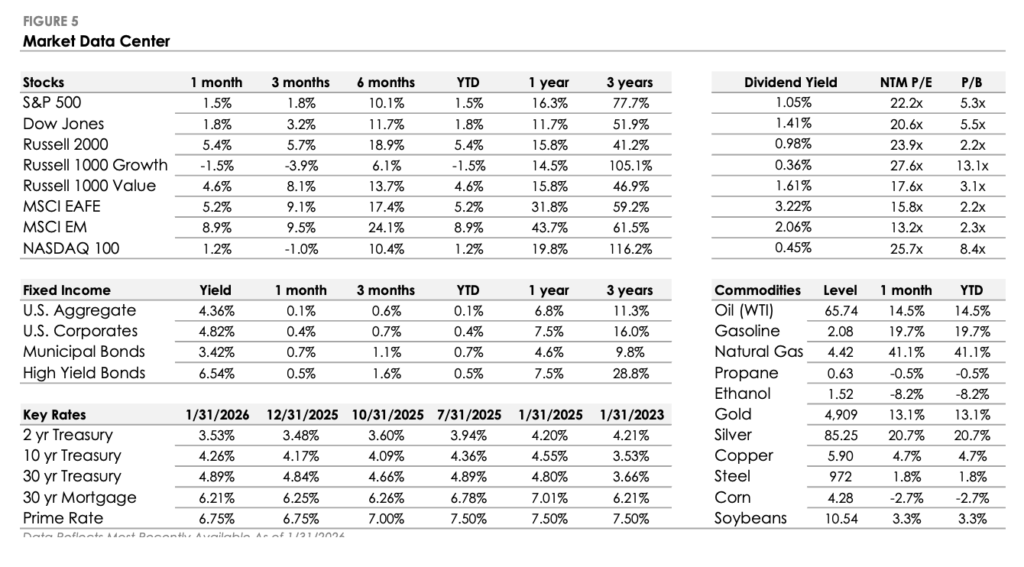 January’s market action is a great reminder of the value of diversification. When leadership shifts—from big tech to smaller companies, or from stocks to commodities—having a well-balanced portfolio helps smooth the ride and avoid overreliance on any single trend.